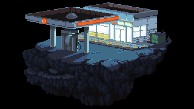 The idea sparked from a late-night walk when we stumbled upon a lone ice machine glowing in the darkness. It felt like a mysterious, transitionary point for travelers. That eerie yet fascinating atmosphere stuck with us, eventually evolving into the concept of a gas station as the only beacon of light in a vast void.